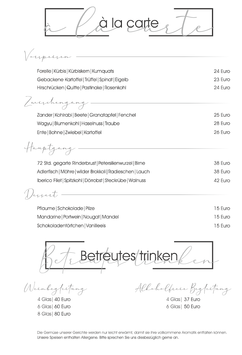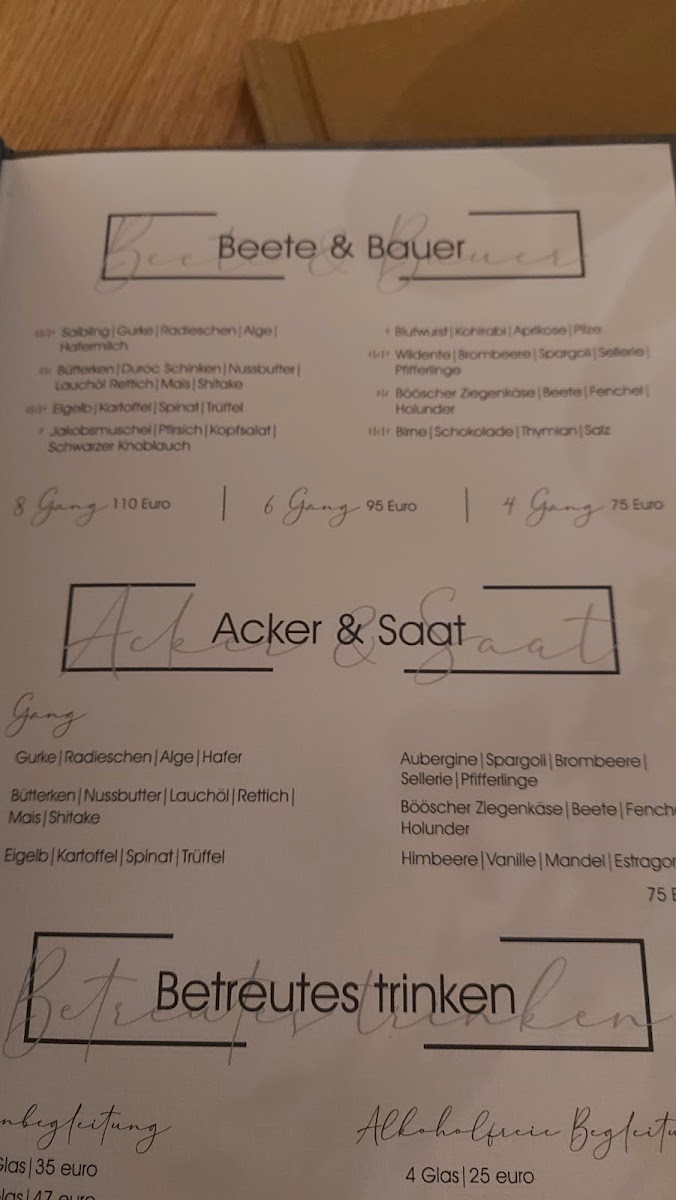 Viewed as a whole, the menu at Mod - By Sven Nöthel on Grafschafter Str. 197A in Duisburg feels carefully curated, balancing rustic roots with modern finesse. Savory highlights set a confident tone, especially the Venison, which reflects a clear respect for game and seasonal cooking, alongside the comforting presence of Gans, offering depth and warmth typical of refined German cuisine. Simpler elements like Brot and Brotzeit are treated with intention rather than as afterthoughts, working as a solid foundation for the menu, while Schinken adds a familiar yet well-executed savory accent. The interplay of flavors becomes more expressive with Ziegenkäse, whose gentle tang is elevated by creative combinations such as Schwarzer Knoblauch, bringing subtle sweetness and umami into balance. On the dessert side, the menu closes with elegance rather than excess: Schokoküchlein delivers classic indulgence, enriched further by the smooth, delicate notes of Weiße Schokolade. The pairing of fruit and cocoa in Birne Schokolade rounds out the experience with a refined contrast of freshness and richness. Taken together, the menu reads as thoughtful and cohesive, where each dish-from hearty mains to nuanced desserts-plays a clear role in expressing the restaurant’s culinary identity without unnecessary complexity.
